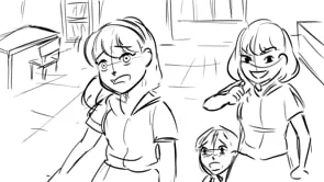 This storyboard is beginning to climax. After the letter is torn, Sui runs out of the classroom, and Hami goes out too. Hami finds Sui behind the building. Sui sees Hami, and they hear the police car sound. The police arrests Lim and another bully. Sui looks Hami with a curious face. Hami just winks to Sui. Yes, Hami calls the police! Sui looks Hami in a lovely face. Sui gives a kiss to Hami.